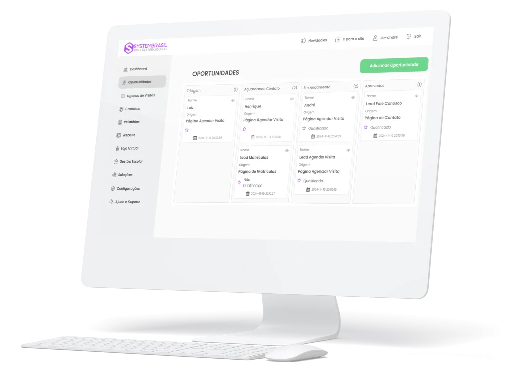 Com o SYSTEM AGENDA, pais e responsáveis podem agendar visitas à escola escolhendo data e horário de forma rápida, diretamente no site. Pelo painel administrativo, a equipe da escola acompanha todos os agendamentos de forma centralizada, podendo organizar a agenda e otimizar o atendimento.
