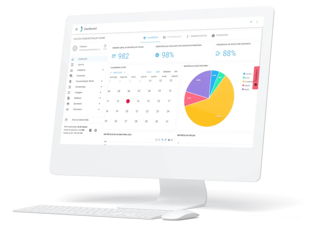 A gestão escolar moderna vai além de processos: ela fortalece o vínculo entre escola, alunos e famílias. Com uma plataforma completa e intuitiva, é possível administrar matrículas, frequência, notas e comunicação com mais eficiência e economia.